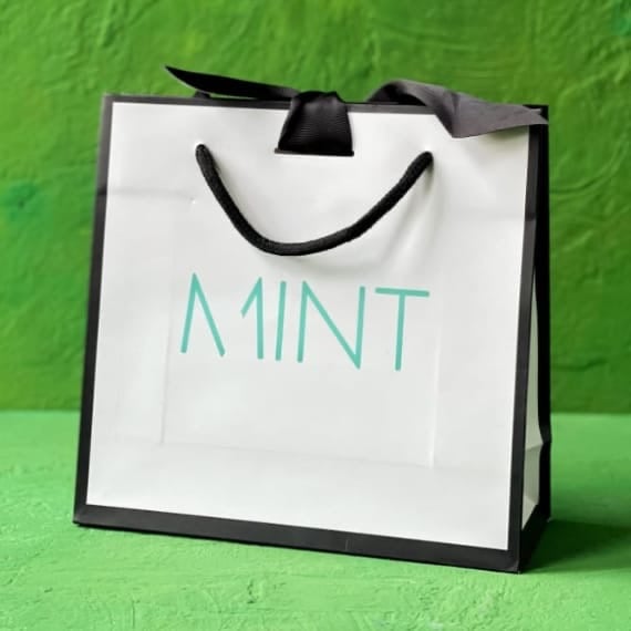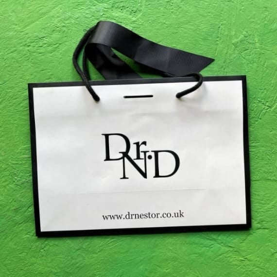 Our express print service allows you to order printed ribbon tie black edge laminated paper carrier bags with fast delivery times and low MOQ's. For extra-urgent orders please call us on 01373 825834 for assistance.