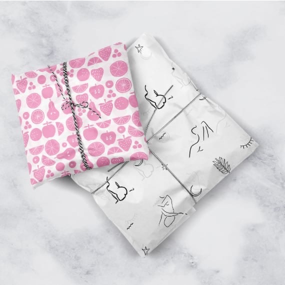 Our express print service allows you to order printed tissue paper with fast delivery times and low MOQ's. For extra-urgent orders please call us on 01373 825834 for assistance.